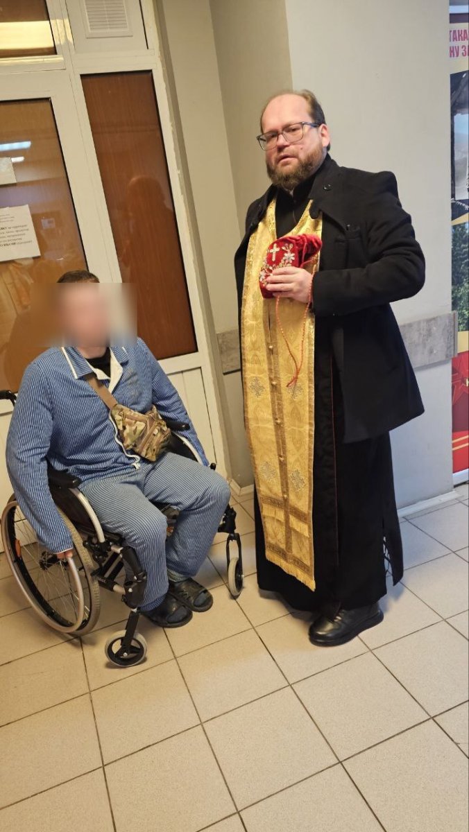 Основным пунктом нашей поездки был Белгородский военный госпиталь. Под руководством начмеда в госпитале разгрузили лекарства, одноразовые пеленки, резиновые тапочки, реанимационную кровать. Благодаря усилиям прихожан Знаменским приходом были закуплены более 300 подарочных наборов для раненых солдат. Отец Владимир вместе с помощниками обошел палаты на двух этажах госпиталя. Ребята были очень рады неожиданным подаркам в преддверии Нового Года и Рождества. Очень многие исповедовались и причащались Святых Христовых Таин. Один воин попросил его крестить. Наш настоятель долго общался с ранеными, у которых были вопросы к священнику. Всем желающим были розданы нательные крестики и иконки.