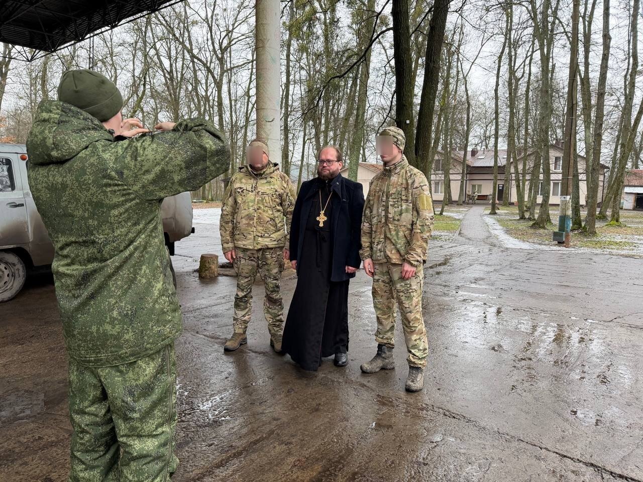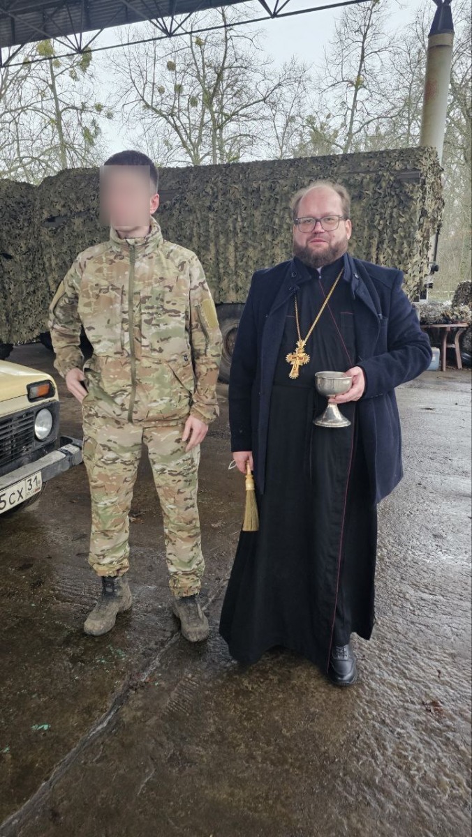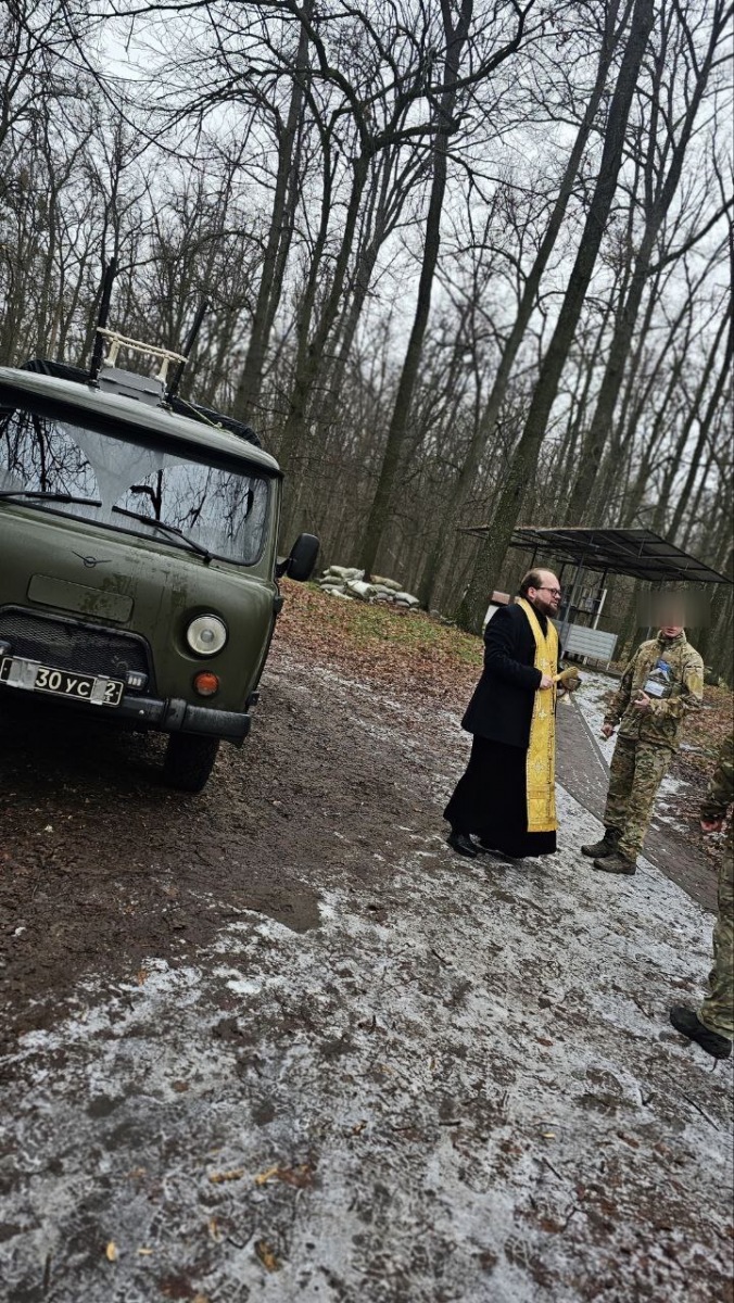 Оказалось, погранцы давно ждали отца Владимира, так как за минувший год никто из них не общался со священником. Встретили нас очень тепло. Весь отряд выстроился и после приветственного слова батюшка окропил всех святой водой. Затем отец Владимир освятил здания военной базы Также были освящены боевые и логистические машины. Очень многие воины просили принять у них исповедь. Некоторые из них в этот же день должны были выехать «за 0». Отрадно было видеть, что наши защитники действительно жаждали общения со священником, со всех сторон подбегали ребята – кто с вопросом, кто с просьбой помолиться или дать духовный совет.